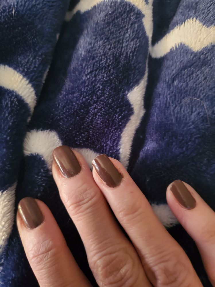 Since the pandemic, I obviously can't go to the nail salon and get a manicure. (I live in California) I started taking a nail & hair vitamin, and painting my nails, regularly. Use a quality nail polish, too. I bought my own manicure set and shine & buffer set. I use castor oil on my cuticles and a heavy almond paste, hand cream. Here in the photo is my right hand, nails painted with Nails Inc, keep it tonal, in Chamomile Street. I think my hands look a little old but I am 54.